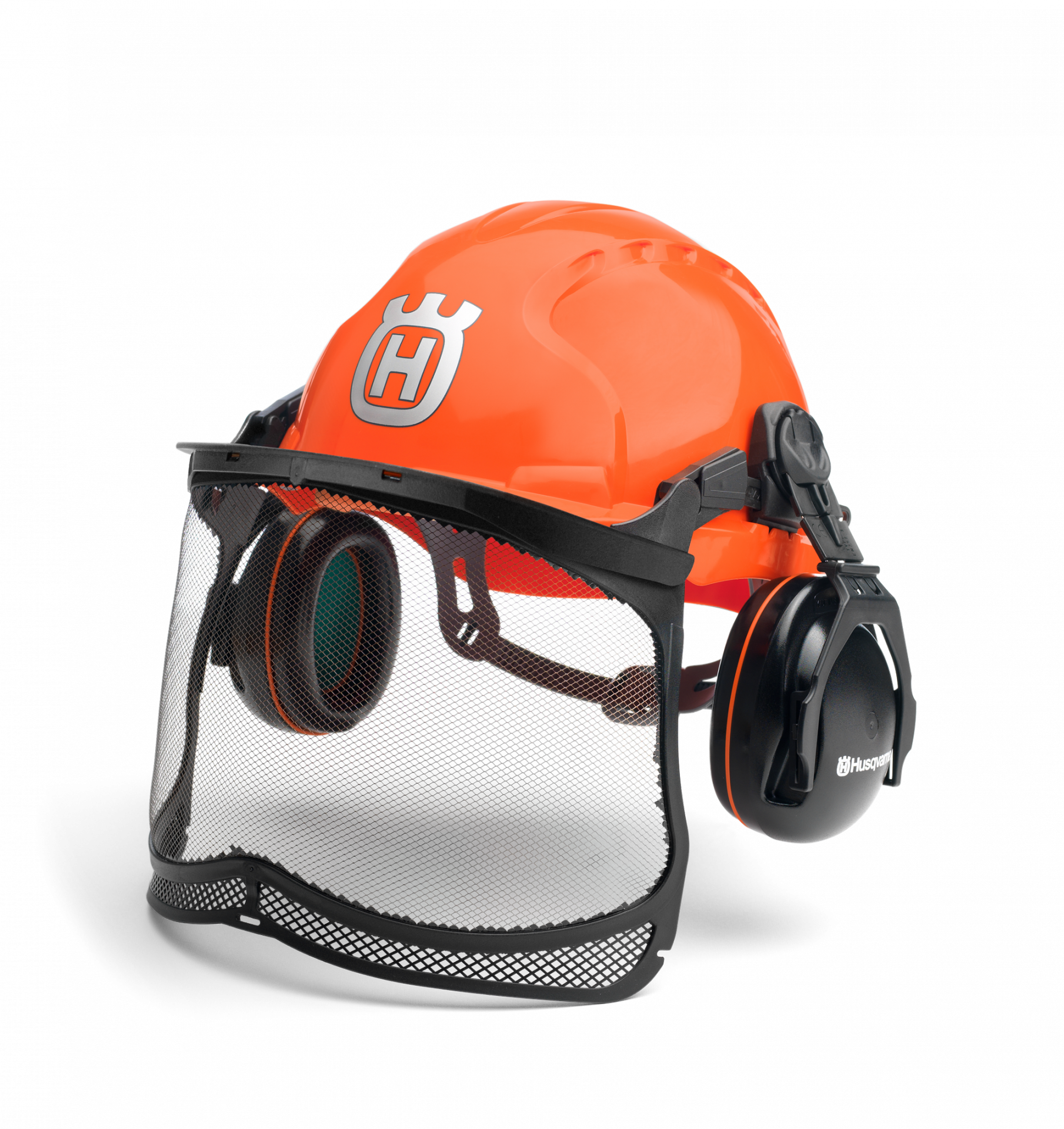 - Teljesen felszerelt védősisak kisebb erdészeti és kerti munkákhoz.